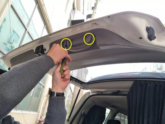 6. গাড়ি এবং ডান ন্যূনতম বন্ধনী বন্ধনী অপসারণ করুন, আমাদের বিদ্যুতের tailgate চোরাচালানকারী (গাড়ীর দিকে বল মাথা) ডান নিম্ন বন্ধনী ইনস্টল করুন, একটি গাড়ী স্ক্রু সঙ্গে স্থির।