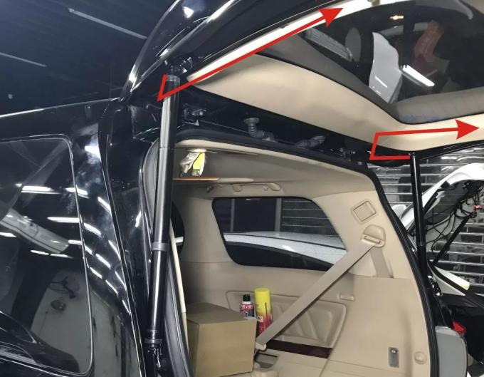 7. মূল গাড়ির বাম উপরের বন্ধনীটি অপসারণ করুন, উপরে উপরের বাঁদিকের বাঁক এবং আমাদের ইলেকট্রিক লেগ গেট শেফার (ঊর্ধ্বে দিকে লাইনের মেরু), আমাদের স্ক্রুগুলির সাথে স্ক্রু ফিক্সারের খুঁটি ইনস্টল করুন।