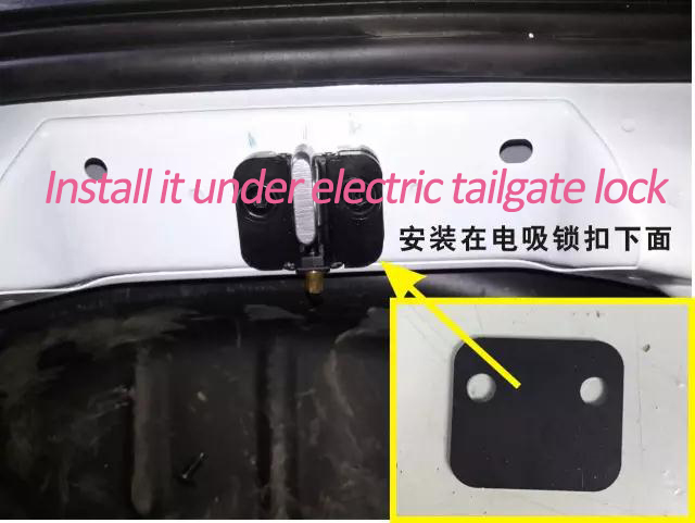 10. মূল গাড়ী লক সরান, আমাদের বৈদ্যুতিক স্তন্যপান লক ইনস্টল করুন, বৈদ্যুতিক স্তন্যপান লক প্যাড আমাদের কোম্পানীর সঙ্গে একটি বর্গ gasket অধীনে, লক ফিক্স আমাদের screws ব্যবহার