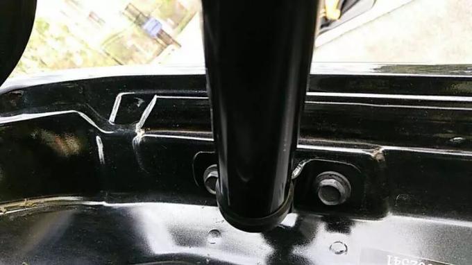 7. মূল গাড়ী বল মাথা দিয়ে আমাদের strut ইনস্টলেশন, এখন থেকে প্লাগ উপর প্লাগ মাধ্যমে রিজার্ভেশন গর্ত Holzer লাইন , (বাম এবং ডান হিসাবে একই পদক্ষেপ)